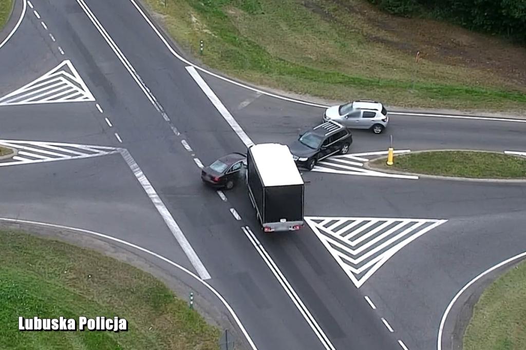 Tym razem dron wykorzystany był w działaniach prowadzonych w powiecie krośnieńskim. Był pomocny w ujawnianiu wielu nieprawidłowości, którymi wykazywali się zmotoryzowani. Łącznie policjanci zdyscyplinowali 35 kierowców. Ponadto oko kamery bezzałogowego statku powietrznego zarejestrowało zdarzenie drogowe. W nim kierująca osobowym audi nie ustąpiła pierwszeństwa przejazdu i uderzyła w busa jadącego drogą krajową. Ten jeszcze delikatnie uderzył w oczekujący na wjazd na droge krajową osobowy volkswagen. Zarówno kierująca audi jak i kierujący fiatem ducato byli trzeźwi. Bardzo groźnie wyglądające zdarzenie z uwagi na obrażenia kobiety zakwalifikowane zostało jako wypadek drogowy. Pokazuje to w sposób jednoznaczny, jak chwila braku koncentracji lub ignorowania znaków może skutkować na drodze.